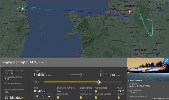 Luchtverkeerssituatie – Piloot kan niet handelen (klik hier). Vandaag was er een HiSky Airbus A321-271 met registratie YR-WIN op vlucht H4474 van Dublin / Ierland ( DUB ) naar Chisinau / Moldavië ( KIV ), met vertrek om 12:45 uur, toen de bemanning bijna 20 minuten na de start in Dublin overging op noodcode 7700 omdat een van de piloten plotseling niet meer in staat was te handelen, schrijft Dr. William Makis MD.