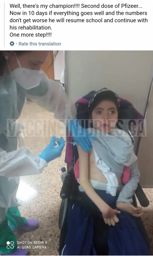 Diego was een van de eerste kinderen die in Spanje het COVID-19 vaccin kregen.