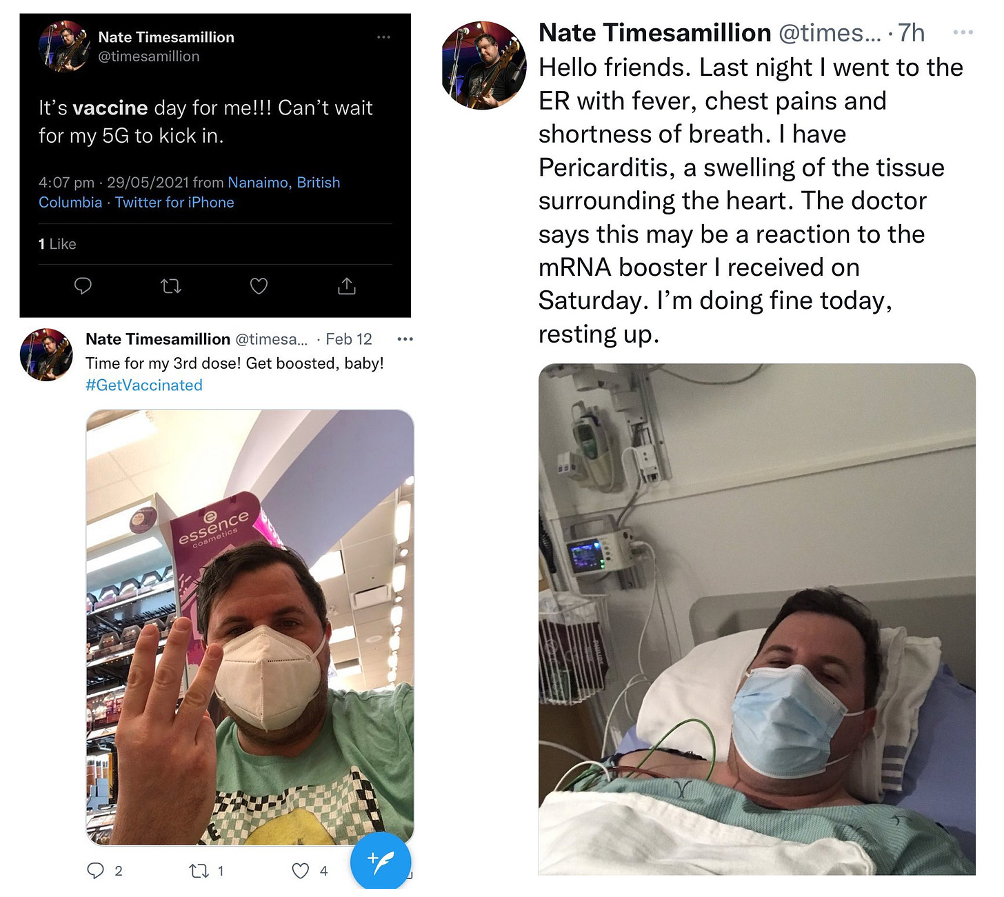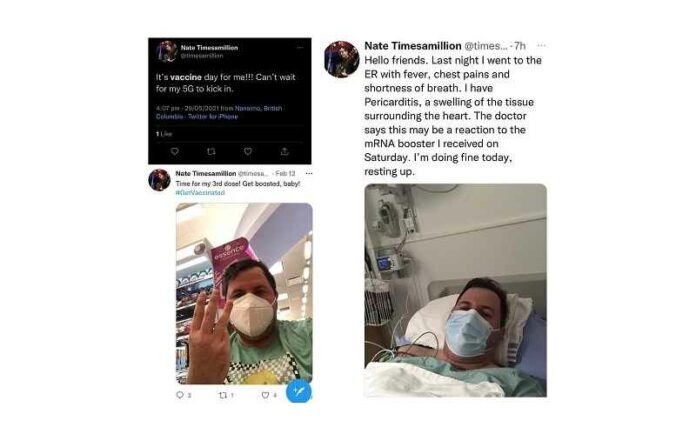 Feb. 2022 – Nate Timesamillion ontwikkelde pericarditis kort na zijn 3e COVID-19 vaccin (booster)