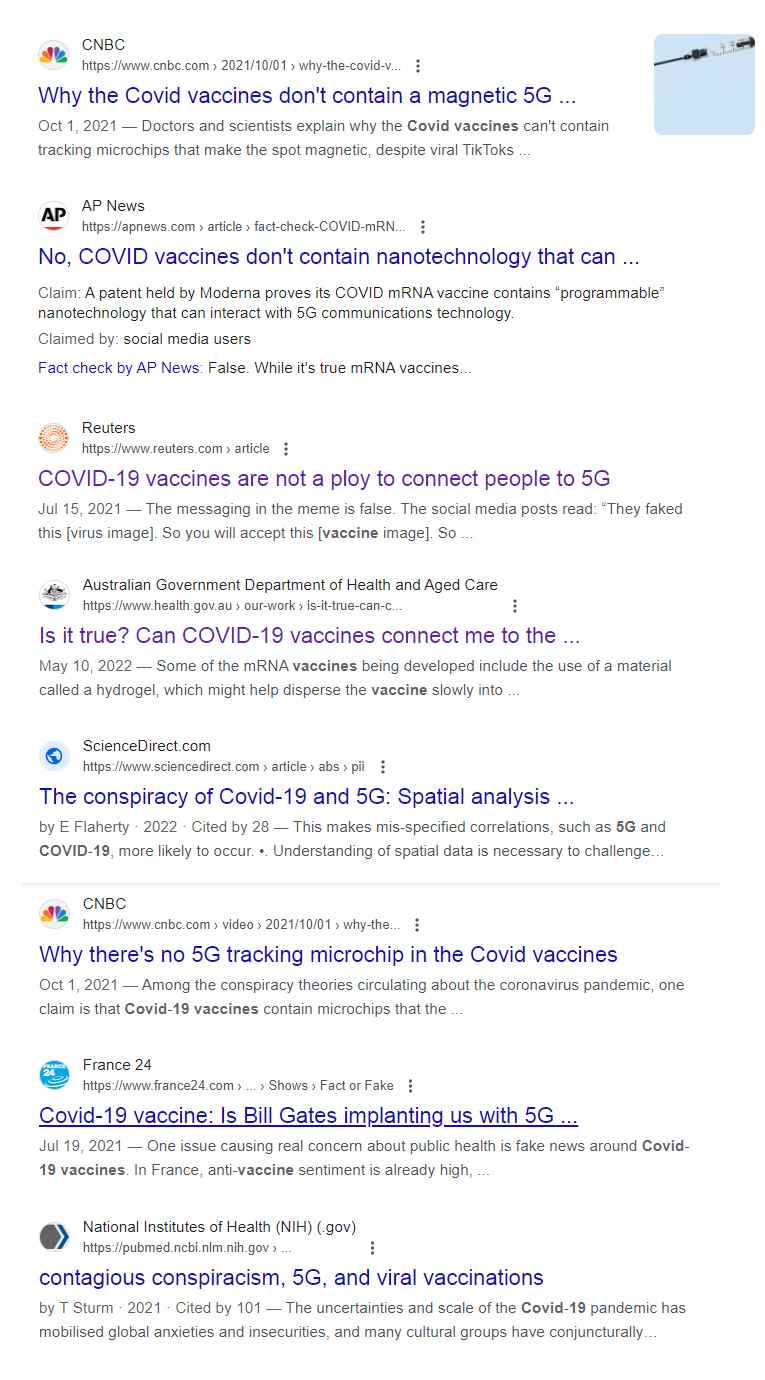 Deze propaganda was succesvol genoeg dat sommige mensen die COVID-19 Vaccins kregen, grappen maakten over 5G, zich niet realiserend dat er onafhankelijk van elkaar oprechte zorgen waren over beide technologieën.