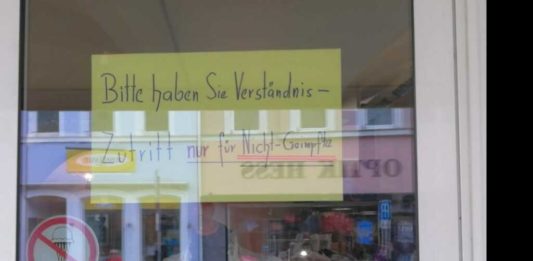 Als u gevaccineerd bent, mag u de winkel “Wolperdingar” niet binnen!