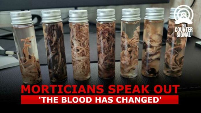 Veteraan balsemer Wallace Hooker vertelde de Epoch Times dat hij gelooft dat de vaccins iets te maken kunnen hebben met de stolsels. Hij ziet ongeveer 300 lichamen per jaar.