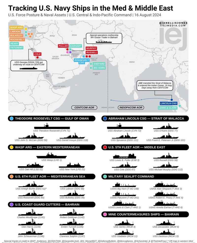CSG USS Lincoln passeerde 3 dagen geleden de Straat van Malakka. Hier is de huidige inventaris van US Naval Deployments in die regio: