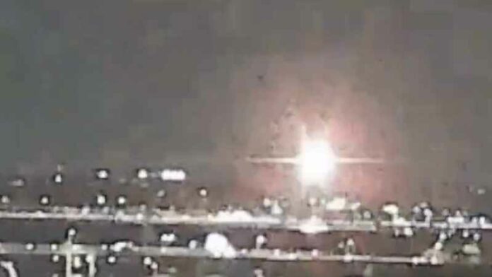 Op een video die op X is geplaatst en die is opgenomen via de webcam van het Kennedy Center, is te zien wat lijkt op een explosie in de lucht bij de Potomac River.