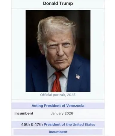 Gisteren vond de opperbevelhebber van de VS het gepast om een nep-Wikipedia-pagina te plaatsen, waarin hij zichzelf uitriep tot “waarnemend president van Venezuela”. Op zijn (alternatieve) Truth-media. Ironie ten top.