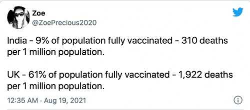 “Ik denk dat ik dit nog een keer moet zeggen. Delta heeft een Ro van ongeveer 8, ongeveer 3x die van de Alpha. Met deze leaky vaccins, als we 100% vaccinopname en perfect mondkapjesgebruik zouden hebben, kunnen we de verspreiding van Delta niet stoppen. (Bron)