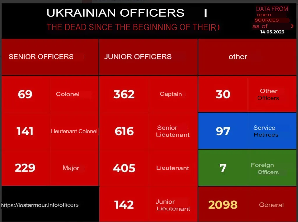 Nou, zou ik zeggen. Deze grimmige kijk laat zien hoeveel officieren Oekraïne heeft verloren.
