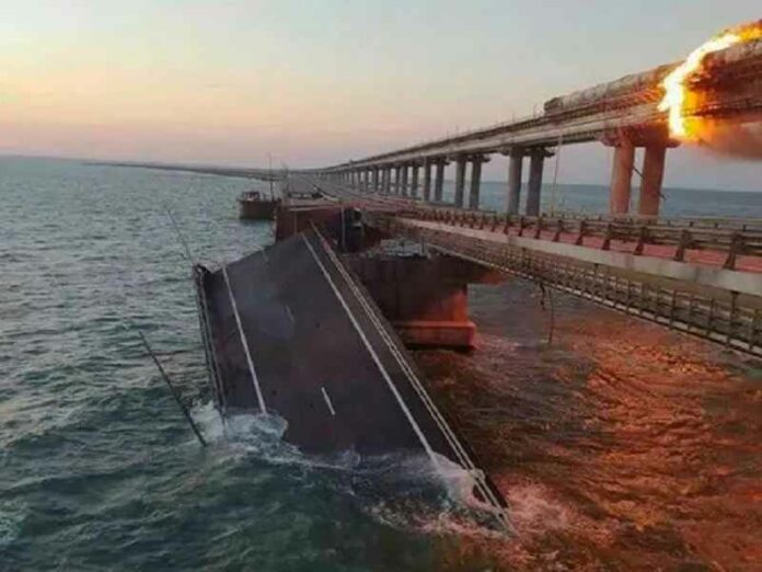 Het Russische nationale antiterreurcomité meldde zaterdagochtend dat “een vrachtwagen is geëxplodeerd op het snelweggedeelte van de Krimbrug vanaf het schiereiland Taman, waardoor zeven brandstoftanks van een trein op weg naar het schiereiland de Krim in vlammen zijn opgegaan”, waardoor “twee snelweggedeelten van de brug gedeeltelijk zijn ingestort.” Hoofd van het Krimparlement Vladimir Konstantinov gaf de schuld aan “Oekraïense terroristen”, wat samenviel met Zelensky’s senior adviseur Mikhail Podolyak en de beruchte Russiagate samenzweringstheoreticus Adam Kinzinger die deze zelfmoordaanslag op Twitter prees.