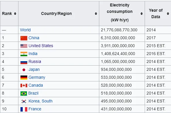 Ook landen met MINDER inwoners, zoals Duitsland, zouden niet eens in de top 10 staan. Toch is Duitsland een economische grootmacht, en hoewel het een veel kleinere bevolking heeft dan Rusland, staat het dicht bij het land op de lijst, in perfecte overeenstemming met zijn plaats op de PPP-grafiek van het BBP. Dit geeft duidelijk aan dat de energieproductie/-consumptie van een land nauw en correlatief samenhangt met zijn economische macht, en niet zozeer met de omvang van de bevolking.