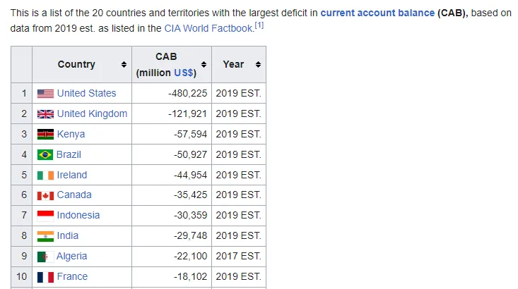 Daarom zijn de VS in staat om een wereldwijd toonaangevend negatief tekort op de ‘Current Account Balance’ van bijna -500 miljard te handhaven.