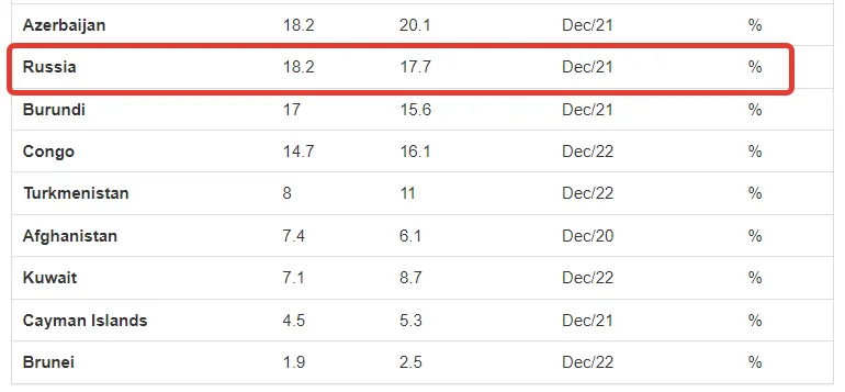 En aangezien iedereen het net iets anders berekent, hebben andere bronnen het met Rusland ruim voor in 2022: