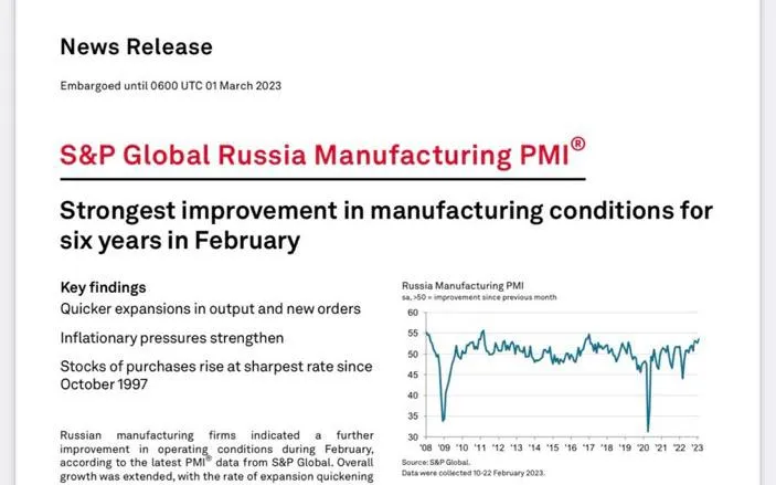Ondertussen blijven de economische vooruitzichten van Rusland groeien naarmate de Euraziatische band tussen Rusland en China hen beiden versterkt. Vorige maand heeft de Russische productiesector zelfs de grootste stijging/verbetering in zes jaar laten zien: