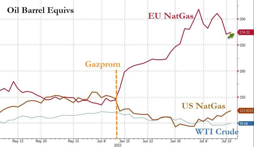 Al dagen voor de Europese “Doomsday” van 22 juli, wanneer het geplande Russische 10-daagse onderhoud van de cruciale Nord Stream pijpleiding naar Duitsland zou moeten eindigen – maar dat in grote twijfel wordt getrokken omdat Gazprom onlangs zei dat het de “goede werking” niet langer kan garanderen omdat cruciale turbines eerder in verband met sancties in Canada werden tegengehouden – heeft de Russische energiegigant Force Majeure (overmacht) verklaard aan één grote Europese klant, bericht Tyler Durden.