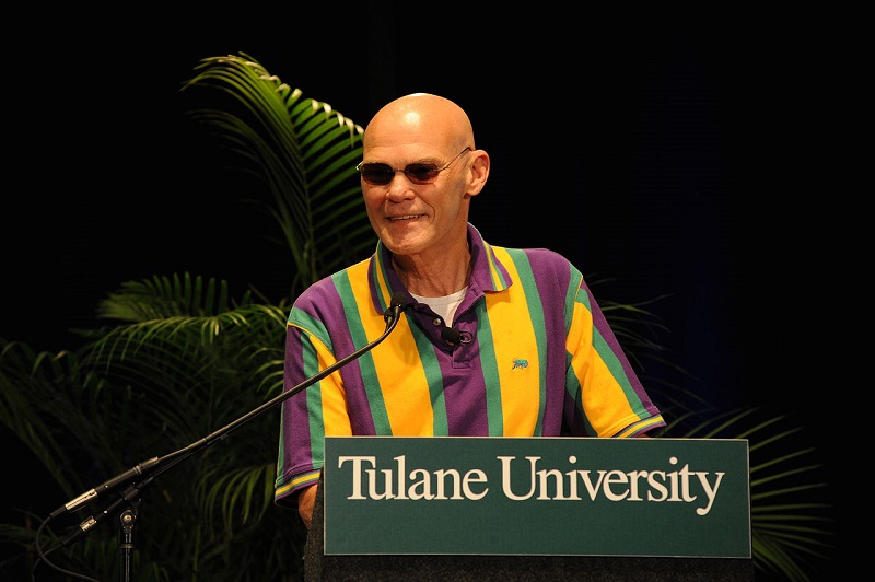 De reden waarom Carville in een TV-optreden een pet droeg met het LSU-universiteitslogo was dat hij extreem boos is op een columnist [Appelbaum] van de New York Times die spotte met degenen die naar de vrije openbare Louisiana State University gingen door zich af te vragen of de school wel echt een universiteit is.