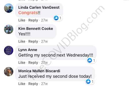 Ze uitte haar opwinding en verlangen naar de injectie een week daarvoor. Verschillende vrienden en anderen feliciteerden haar en deelden ook hun “vaccinatie” status.