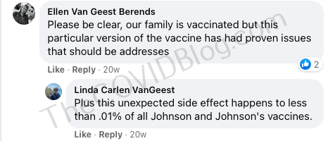 Ze ging onmiddellijk in het defensief over haar beslissing. De volgende dag plaatste mevrouw Berends een propagandagrafiek van Banner Health, kennelijk in een poging om zichzelf gerust te stellen over haar mRNA-injectie. Ze meldde dat ze die dag een zere arm had, maar ging door met het rechtvaardigen van haar beslissing tegenover vrienden en familie in de commentaren.