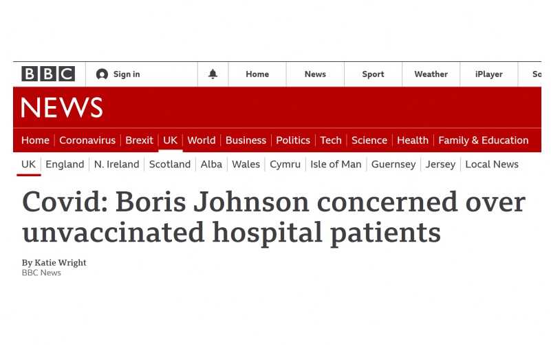 Een artikel van de hand van Katie Wright voor BBC News bevat een citaat van Boris Johnson waarin hij beweert dat “75% van de mensen die aan Covid bezwijken nog steeds niet zijn gevaccineerd”. Dit is een leugen.