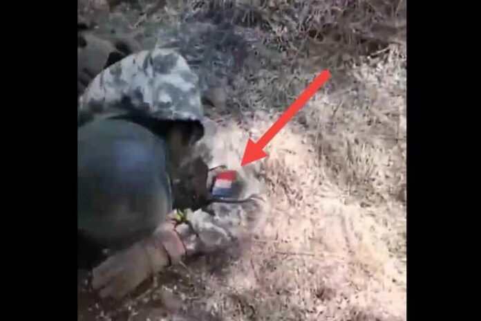 Deze soldaat was geen Oekraïense troepen aan het “instrueren,” hij was verwikkeld in een actief vuurgevecht met Russische troepen – en werd gevangengenomen.