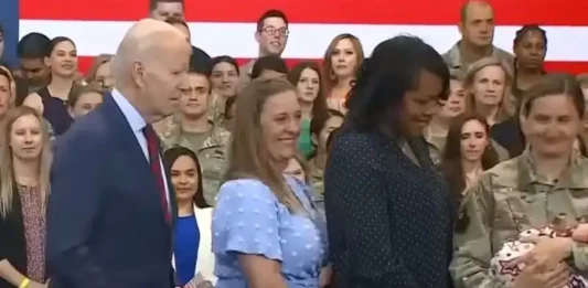 Greepy: Biden loert op baby in de hoop een snuifje te krijgen – begeleiders trekken hem weg (Video)