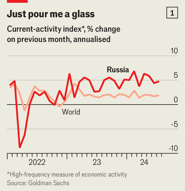 Wat de structuur van deze groei betreft, wil ik u een specifieke indicator geven: het zogenaamde niet-olie- en gas-bbp. Hierin zijn sectoren die verband houden met de productie van koolwaterstoffen niet meegerekend. In 2023 steeg het niet-olie- en gas-bbp van Rusland met 7,2 procent, gevolgd door een stijging van nog eens 4,9 procent, of bijna vijf procent, in 2024. Dit zijn solide cijfers die de totale bbp-groeipercentages overtreffen.