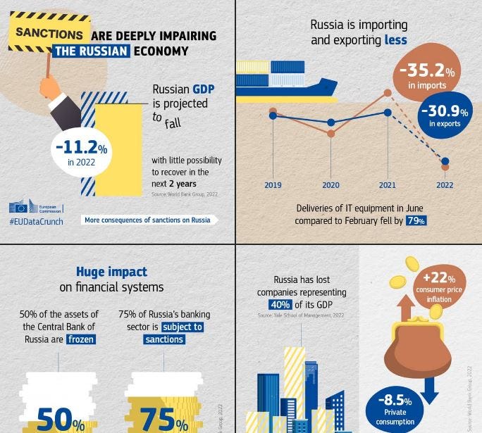 Rusland is in een stroomversnelling gekomen en heeft duizenden sancties overleefd.