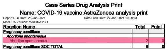 Evenals een totaal van 2 vrouwen die hun ongeboren kind verloren als gevolg van het Oxford/AstraZeneca-vaccin.