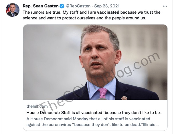 De heer Casten heeft naam gemaakt in de politiek van de Democraten met het gebruikelijke homo-, klimaat- en wapenbezit. Maar vanaf 2021 moeten de Democraten ook die-hard vaccinpushers zijn om verkozen en herkozen te worden. De heer Casten heeft in dat opzicht niet teleurgesteld.