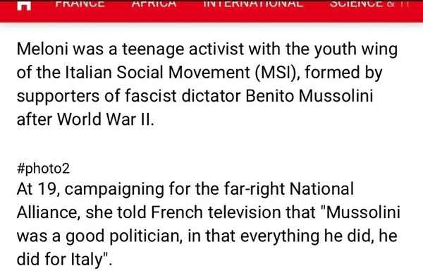 We weten allemaal dat Ukraine de gratis hoer is van de WEF ! En nu gaat Meloni daar ineens steun voor uitroepen. Dat is geen al te beste beurt dan ! Begint al fout. Of ze snapt het niet , of ze snapt het wel. In beide gevallen even erg.