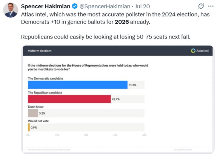 De laatste peilingen blijven een sterke opmars van de Democraten voor de tussentijdse verkiezingen van 2026 laten zien, nu de mensen de hoop op de onverbeterlijk corrupte Republikeinen, die in handen zijn van de AIPAC, verliezen:
