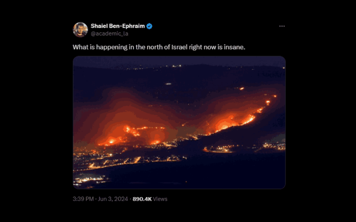 Torenhoge bosbranden woedden dinsdag in het noorden van Israël na drone- en raketaanvallen van Hezbollah op Israëlische nederzettingen en militaire bases. De branden vormen de laatste escalatie in de grensoverschrijdende oorlog die al 8 maanden aan de gang is, schrijft Mike Whitney.