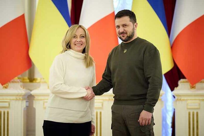 Een “rechtvaardige en duurzame vrede” kan alleen worden bereikt als “Italië, Europa en het Westen Oekraïne blijven helpen,” verklaarde Meloni, eraan toevoegend dat de impasse tussen Moskou en Kiev “alle westerse naties zorgen baart” “niet alleen vanuit menselijk oogpunt, maar nog meer vanuit geopolitiek en veiligheidsoogpunt.”
