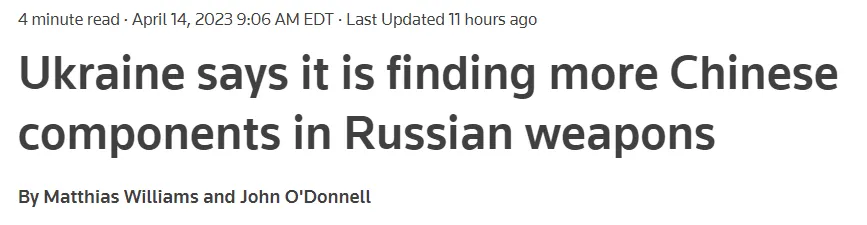 Dit nieuwe artikel van Reuters laat Oekraïne klagen over het feit dat in veel nieuwe Russische wapensystemen nu Chinese onderdelen zitten, in plaats van westerse: