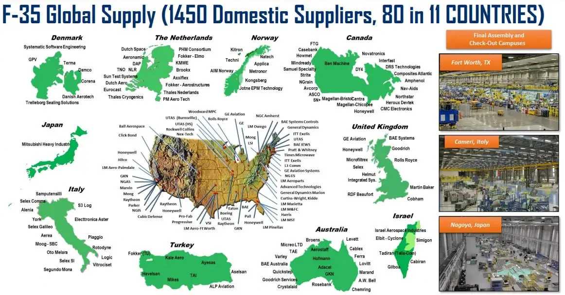 En zoals ik in een eerder artikel al zei, voor degenen die geloven dat Chinese onderdelen in Russische wapens zo’n grote zwakte is, vertel me dan eens wat het voor het Amerikaanse leger betekent dat de F-35 toeleveringsketen er zo uitziet: