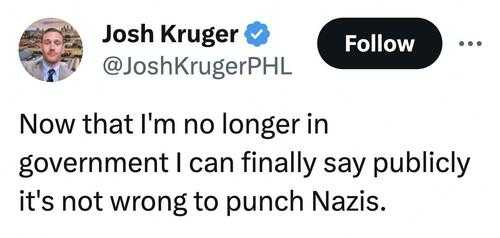 Kruger wilde ook “nazi’s afranselen” en beschuldigde mensen ervan dat ze “niet weten hoe ze misdaadstatistieken moeten lezen.”