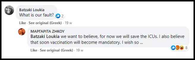 Ondanks haar voorliefde voor het vaccin postte Zikou niet precies op Facebook wanneer zij haar prik had gekregen, wat vreemd is gezien haar enthousiasme om het aan andere mensen op te dringen. Ze postte echter wel op 15 juli dat ze het vaccin verplicht wilde stellen.