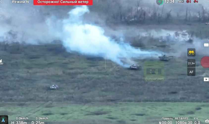 De pantsergroep van de 85e Brigade van de Russische strijdkrachten (T-90 main battle en BMP-3 infanteriegevechtsvoertuigen) met aanvalsinfanterie aan boord bestormt posities van de Oekraïense strijdkrachten in de buurt van Kleshchevka, richting Bakhmut, Donbass (Oost-Oekraïne).