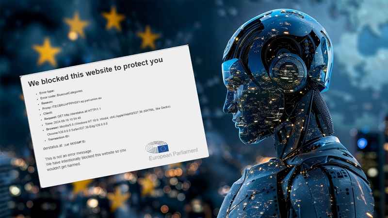 De reden die op het scherm verschijnt zou zo uit 1984 van George Orwell kunnen komen: “We blocked this website to protect you” staat er in zwart en grijs boven het logo van het Europees Parlement. Dus: “We hebben deze website geblokkeerd om u te beschermen.” Het bericht gaat vergezeld van een uitleg dat dit absoluut geen foutmelding is. De site werd opzettelijk afgeschermd zodat de lezer geen schade zou ondervinden.