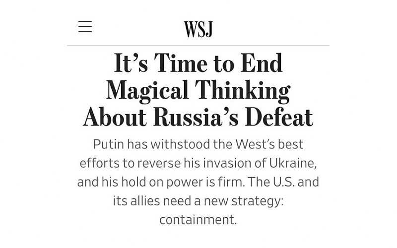 The War Street Journal acknowledges that the narratives it’s been pushing for months — of a successful Ukrainian counteroffensive, a possible palace coup in Moscow, a Russian economy in tatters — are “Magical Thinking.” In other words, their coverage has been a fraud. pic.twitter.com/ZxB25W61Kn