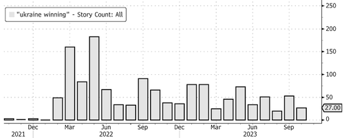 Amerikaanse krantenkoppen met “Oekraïne aan de winnende hand” erin, gegevens via Bloomberg: