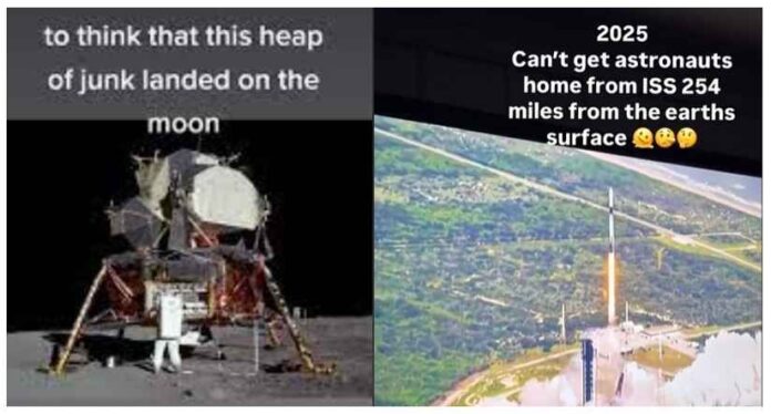 We zijn voorgelogen over 9/11, dus waarom zouden we niet voorgelogen zijn over de maanlanding in 1969? Het is nu 2025, maar we kunnen de gestrande astronauten van het internationale ruimtestation op slechts 254 mijl van de aarde niet gaan redden, terwijl we 55 jaar geleden geen probleem hadden om 238.000 mijl ENKEL naar de maan te reizen met drie mannen, een rover en genoeg raketbrandstof om veilig thuis te komen. Echt waar?
