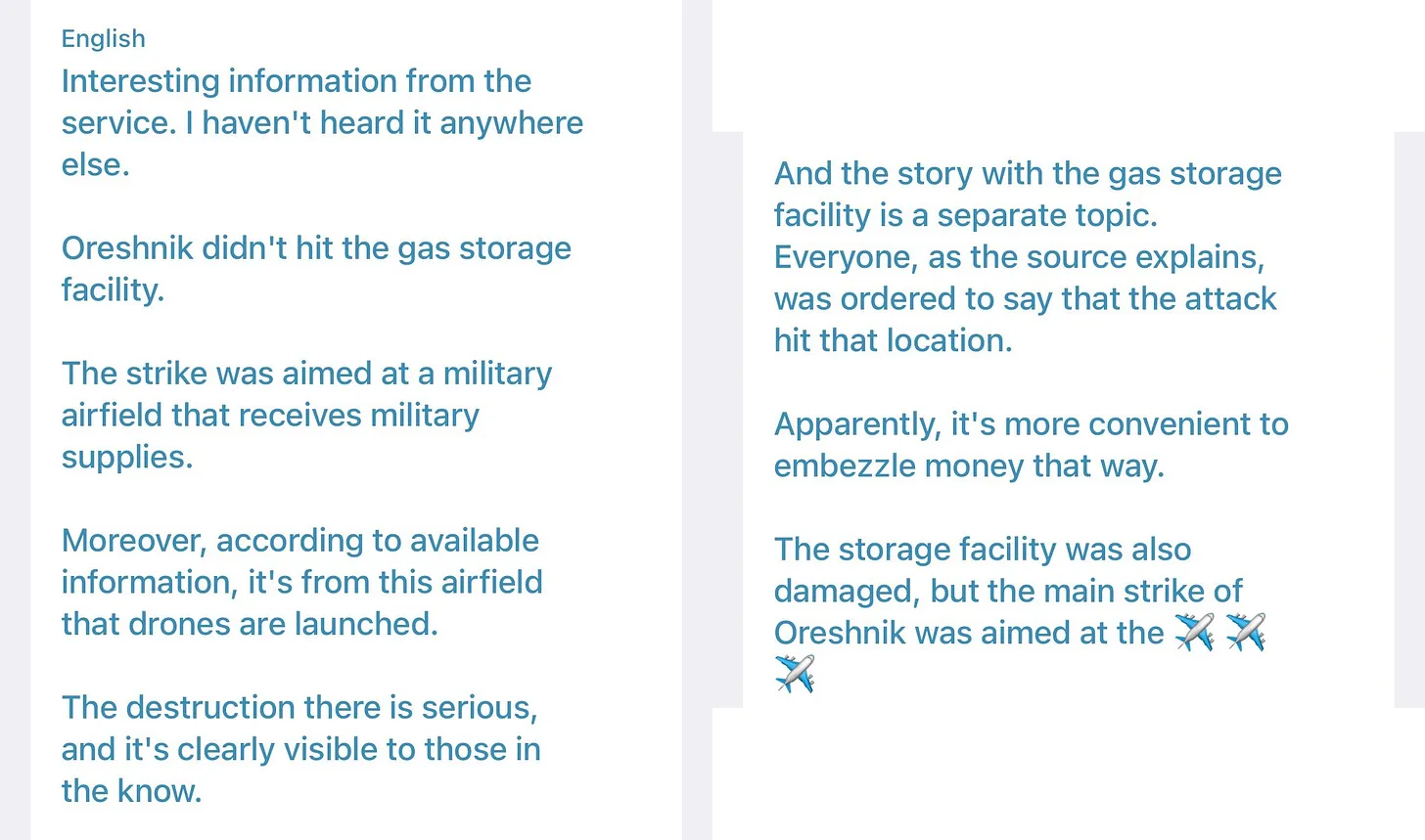 Als laatste interessante opmerking beweert de betrouwbare Oekraïense EW-expert Serhiy ‘Flash’ Beskrestnov inside-informatie te hebben over de aanval op Oreshnik: