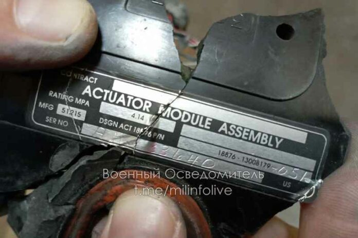 De afbeelding hierboven toont een explosiefragment van een Amerikaanse GMLRS granaat “Actuator”, die teruggevonden is nadat hij donderdag op het terrein van de kerncentrale explodeerde. De Engelse taal op het fabricagelabel van de Actuator toont het onderdeelnummer, het serienummer, de fabricagedatum, en er staat “Actuator Module Assembly” op.