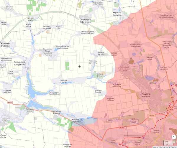 Sinds het verlies van Avdeevka moesten de Oekraïense strijdkrachten steeds weer terugvallen. Er zijn geen natuurlijke barrières die gebruikt zouden kunnen worden voor verdediging en er is geen materiaal om verdedigingslinies te bouwen over kaal land.