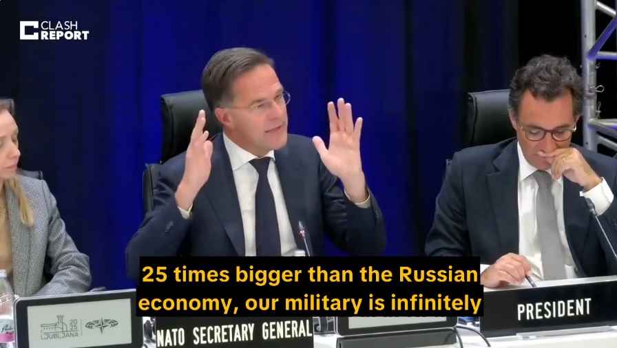 Helaas was dat nog niet eens het ergste van zijn chutzpah. In de volgende video overtreft Rutte zichzelf radicaal door Tom Clancey’s Red October aan te halen en de Russische marine af te schilderen als gereduceerd tot één kapotte, “manke” onderzeeër. Zijn woordenvloed is zo grof en overdreven dat het nauwelijks te geloven is dat het afkomstig is van een zogenaamde NAVO-top van ministers van Defensie, in tegenstelling tot wat geklets achter de schermen in Ruttes favoriete badhuis in Brussel: