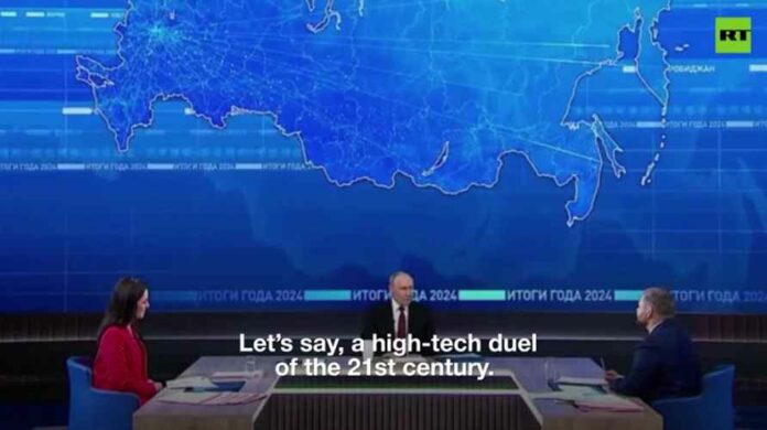 De Russische president Vladimir Poetin heeft het Westen uitgedaagd om hun moderne luchtverdedigingssystemen in te zetten tegen de nieuwe hypersonische Oreshnik-raket van Moskou in wat een “technologisch duel” zou worden. Tijdens zijn jaarlijkse eindejaarspersconferentie op donderdag werd Poetin gevraagd om commentaar te geven op de meningen van sommige buitenlandse militaire experts die suggereren dat de Oreshnik gemakkelijk kan worden neergeschoten door westerse raketafweersystemen.
