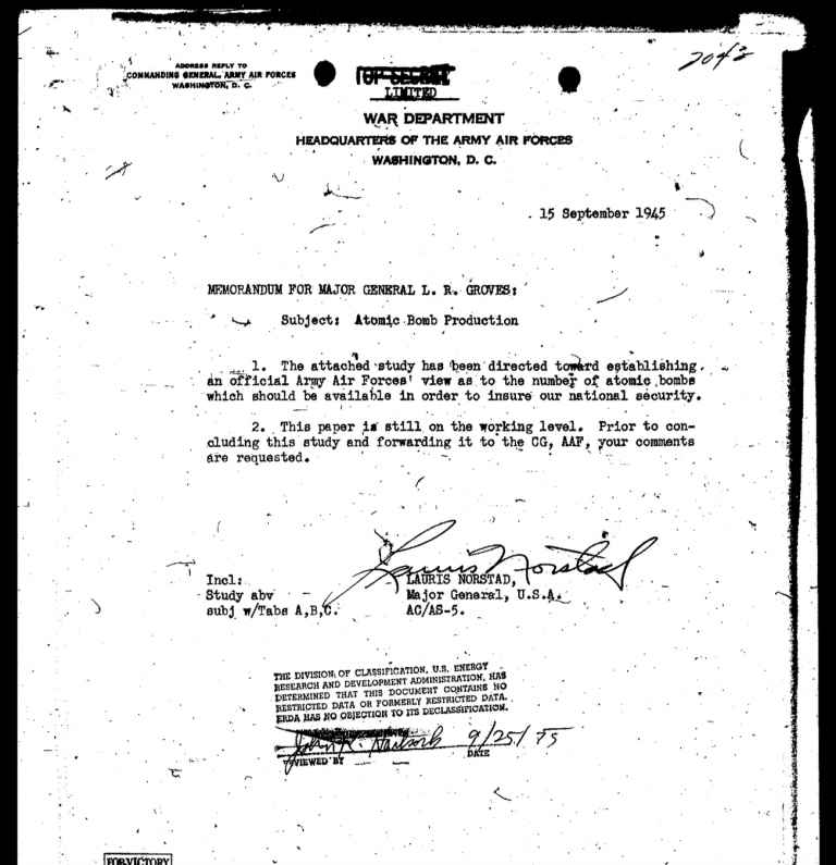 De beruchte “WO III blauwdruk” voor een nucleaire aanval op de Sovjet-Unie (15 september 1945)