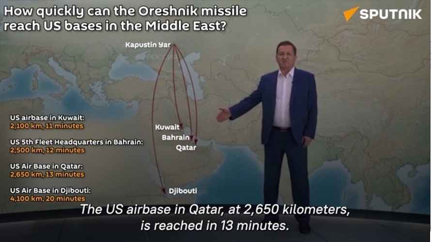 Rusland heeft vandaag ook een video gemaakt die laat zien hoe lang het duurt voordat hun nieuwe Oreshnik raket Amerikaanse troepen kan bereiken die gestationeerd zijn in het Midden-Oosten, Alaska, Hawaii, Montana en North Dakota, waarmee duidelijk wordt dat Europa niet de enige plaats is die moet vrezen voor een dreigende aanval van hun nieuwe raketten, schrijft Brian Shilhavy.