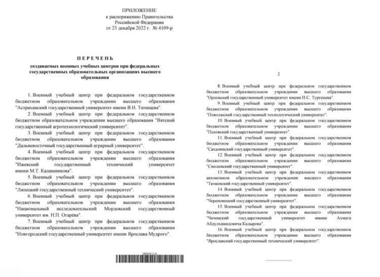 Tegelijkertijd creëert Vladimir Poetin per decreet militaire opleidingscentra in 16 provinciale universiteiten.