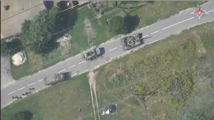 Het ministerie heeft ook video’s vrijgegeven die enkele van de recente lucht-, raket- en drone-aanvallen laten zien die Kievse troepen hebben getroffen in Koersk en Sumy.