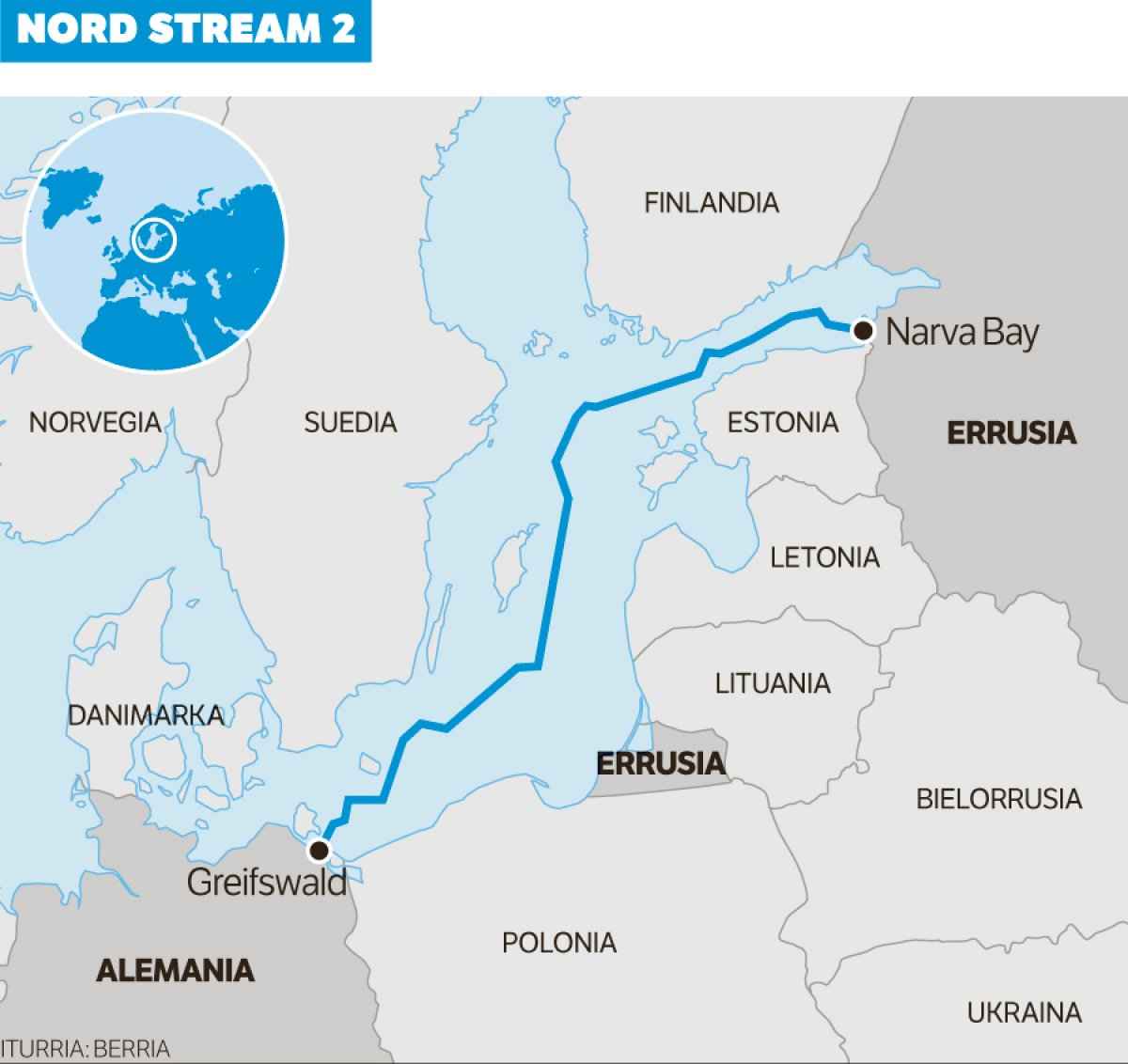 Nord Stream 2 is een bijna-kloon van het Nord Stream 1-project en bestaat uit twee pijpleidingen van 1.220 kilometer die onder de Oostzee zijn aangelegd en Rusland met Duitsland verbinden. Het project ging van start in 2018 en werd voltooid in september 2021. Net als Nord Stream 1 is de Nord Stream 2 ontworpen om ongeveer 55 bcm aardgas van Rusland via Duitsland aan Europa te leveren. Nord Stream 2 wordt net als Nord Stream 1 geëxploiteerd door een multinationale onderneming waarin Gazprom voor 51 procent eigenaar is.